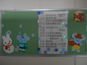 本校の校区は3小学校区からなり、大型店舗などが見られる駅周辺から、豊かな田園の広がる湖岸まで伸びています。医療機関などの公共施設は充実しており、安心して生活できるとともに、自然豊かな地域です。