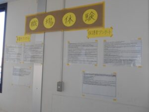 玄関ロビーで野洲養護学校の児童生徒の作品展示