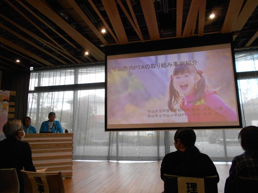 11月22日(土)の午前、守山市PTA連絡協議会主催による「もりやま教育サポーターズ交流会」が、市役所1階多目的ホールで開催されました。本年度から、従来の「守山市PTA大会」から名称や内容を大きく見直して実施されたものです。「『子どものために』を思う、みんなが出会う」をテーマに、市内のPTA・学校・保護者・地域団体など、子どもに関わる多くの方々が一堂に会し、交流を深めました。