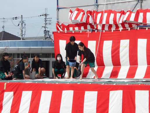 去る11月2日(日)には、勝部自治会主催の「第4回かつべフェスティバル」が晴天のもと開催されました。本校吹奏楽部は出演依頼を受け、3年生引退後、1・2年生のみで初めての演奏を披露しました。また、書道部も書道パフォーマンスを行い、完成した作品は終日ステージのバックに飾られました。