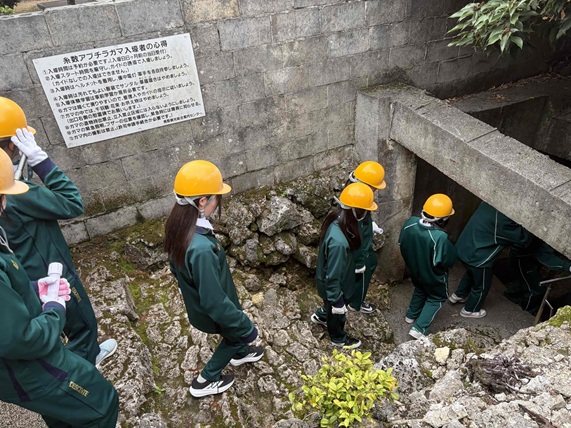 午前中は平和学習を行い、悲惨な歴史の爪痕が残るガマに入ってその様子をガイドさんから教えていただきました。