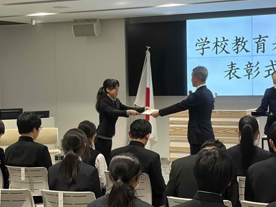 本校からも、多くの生徒および教職員が表彰を受けることができました。団体の部では、男子ソフトボール部、サッカー部、水泳部、科学部の計4団体が表彰されました。また、個人の部においても8名の生徒が栄誉ある賞をいただきました。さらに、日頃より熱心に部活動指導にあたっている教職員4名も、その功績が認められ表彰を受けました。