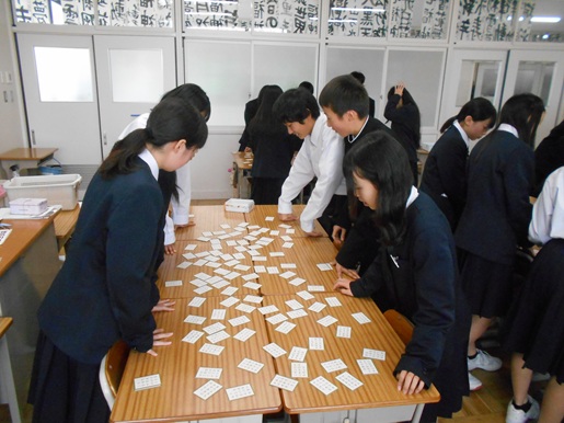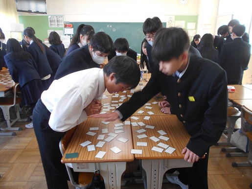 昨日と本日の二日間にわたり、校内にて百人一首大会が開催されました。昨日は1年生、本日は2年生が、それぞれ午後の時間を使って大会を行いました。