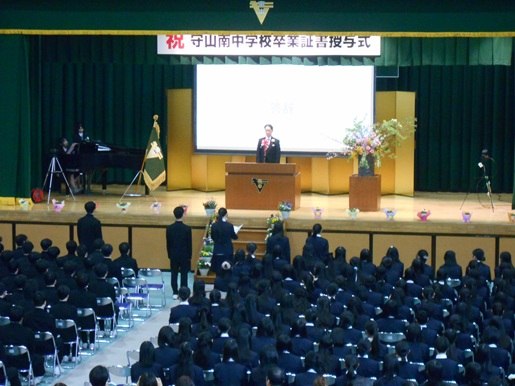 式は終始厳粛な雰囲気の中で進み、これまでの学校生活の思い出が走馬灯のようによみがえる、感動的な時間となりました。卒業生はもちろん、保護者の皆様、教職員の目にも涙が浮かび、3年間の歩みをかみしめるひとときとなりました。