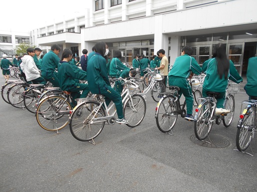 今年4月から自転車に対する交通反則通告制度が始まり、自転車の安全な利用に対する社会全体の意識が一層高まっています。本校でも多くの生徒が自転車で登下校をしており、交通事故防止に向けた指導や声掛けを継続して行っています。