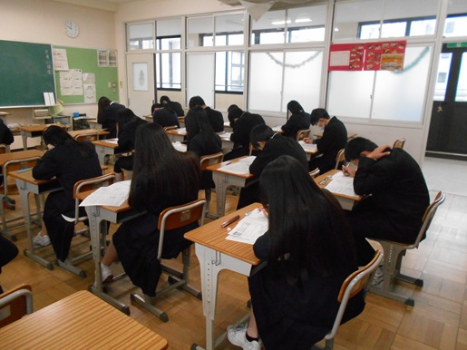 3連休明けの本日から1、2年生は定期テストを実施しており、午前中に3教科を受けました。