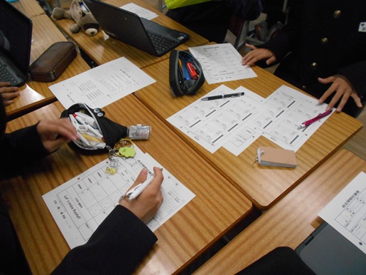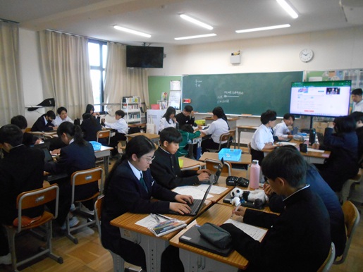 本日5時間目、2年生は総合的な学習の時間において、5月19日に実施予定の京都校外学習に向けた学習に取り組み、今回は、班ごとに行程表を作成するなど、当日に向けた具体的な準備を進めました。