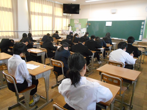 3学期2日目となる本日、1・2年生では、昨日に引き続き実力テストが行われました。生徒たちは、これまでの学習の成果を発揮しようと、教室いっぱいに緊張感が漂う中、真剣な表情で問題に向き合っていました。