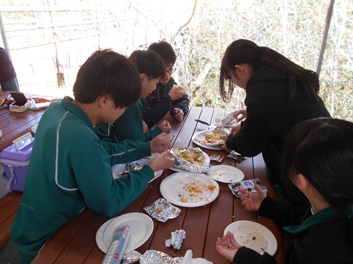 声を掛け合い、役割を分担しながら協力する姿、そして出来上がった料理を囲んで笑顔で語り合う姿からは、3年間で育んできた仲間との絆の深まりが感じられました。学級の仲間と過ごす残り少ない時間を心から楽しむ様子は、大変微笑ましく、教職員にとっても嬉しいひとときとなりました。