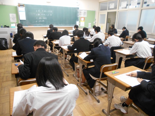 本校では、1・2時間目に国語と数学の調査を実施し、午後には英語の調査を行いました。生徒たちは、これまでの学習の成果を発揮しようと、真剣な表情で問題に取り組んでいました。